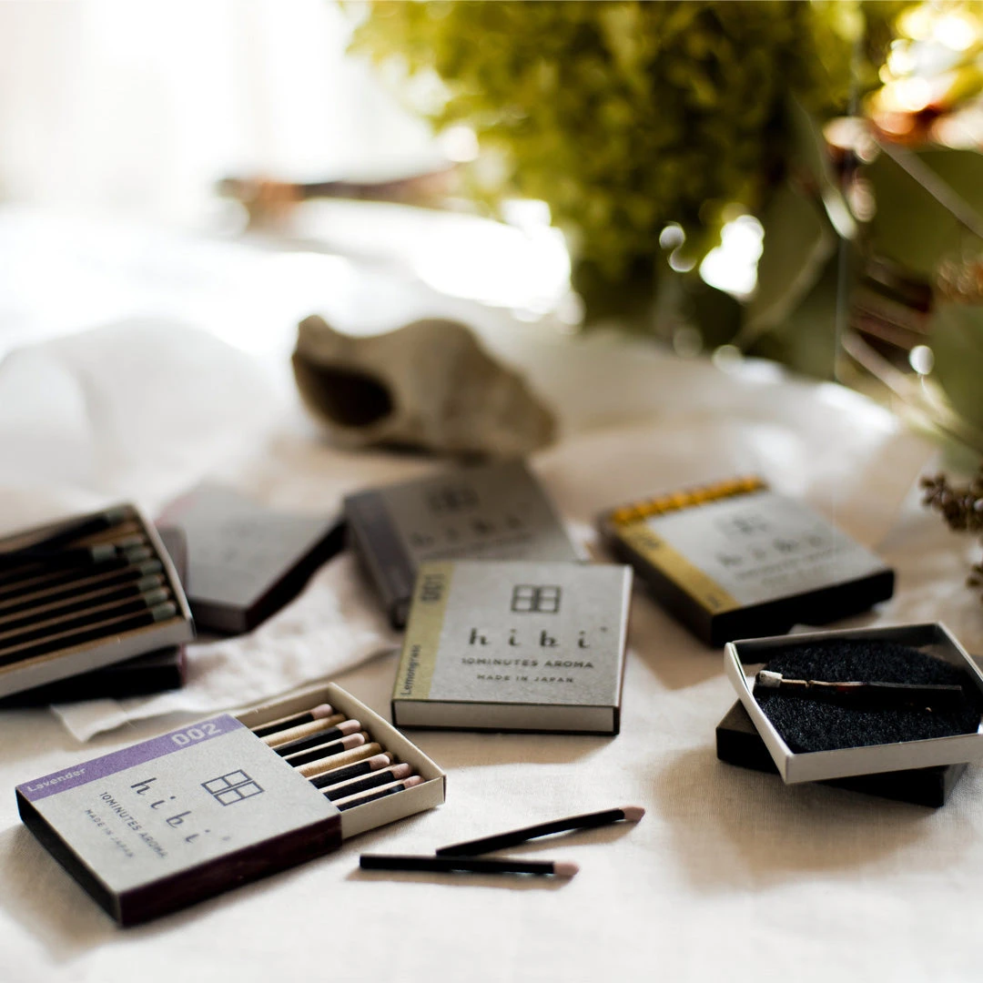 Light the match by striking it, and entrust yourself to the natural fragrance rising in the air. Hibi is an incense stick you can light easily without a lighting device. The incense of Awaji Island and matches of Harima. Born from the encounter of two of Hyogo prefecture’s traditional crafts.