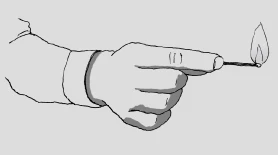 ②Take out a stick of hibi and press its top tip against the brown rough surface on the side of the box (the side for striking) at an angle of 45 degrees, and scrape it diagonally down to light it. Hold the stick at its mid-point as it might break easily if you hold the far tip of the stick to strike it.