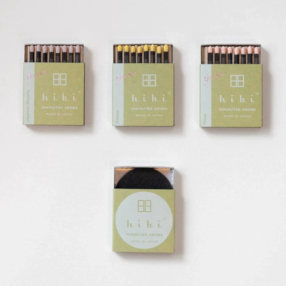 Light the match by striking it, and entrust yourself to the natural fragrance rising in the air. Hibi is an incense stick you can light easily without a lighting device. The incense of Awaji Island and matches of Harima. Born from the encounter of two of Hyogo prefecture’s traditional crafts.