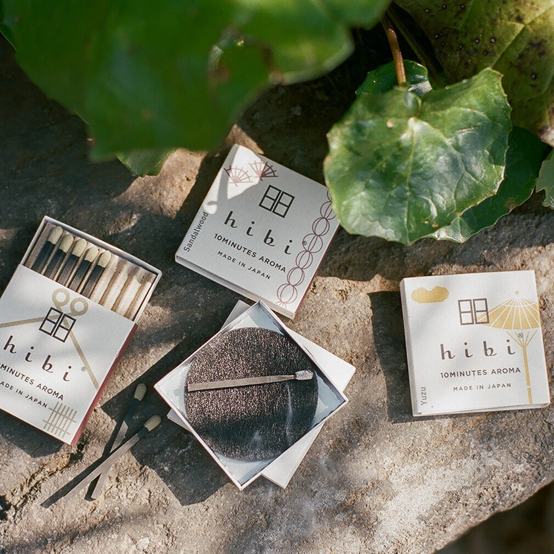 Light the match by striking it, and entrust yourself to the natural fragrance rising in the air. Hibi is an incense stick you can light easily without a lighting device. The incense of Awaji Island and matches of Harima. Born from the encounter of two of Hyogo prefecture’s traditional crafts.