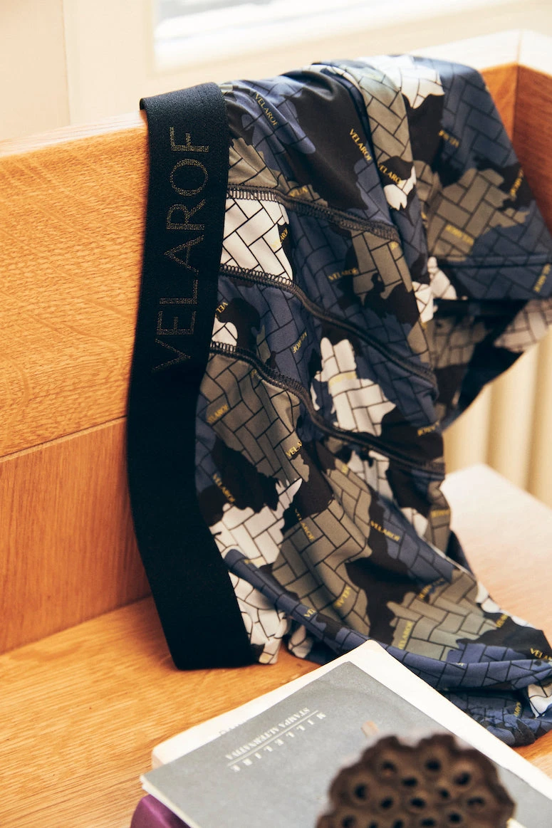 Sealed with a branded waistband, Camouflage Lake reveals an intricate camouflage print created from the contours of Shiga Prefecture and Lake Biwa, Japan’s most ancient lake. Complementing the design is a premium fit and a sequence of small logos to reflect the bright yellow sunflower fields that bloom on Lake Biwa’s shore each Summer.