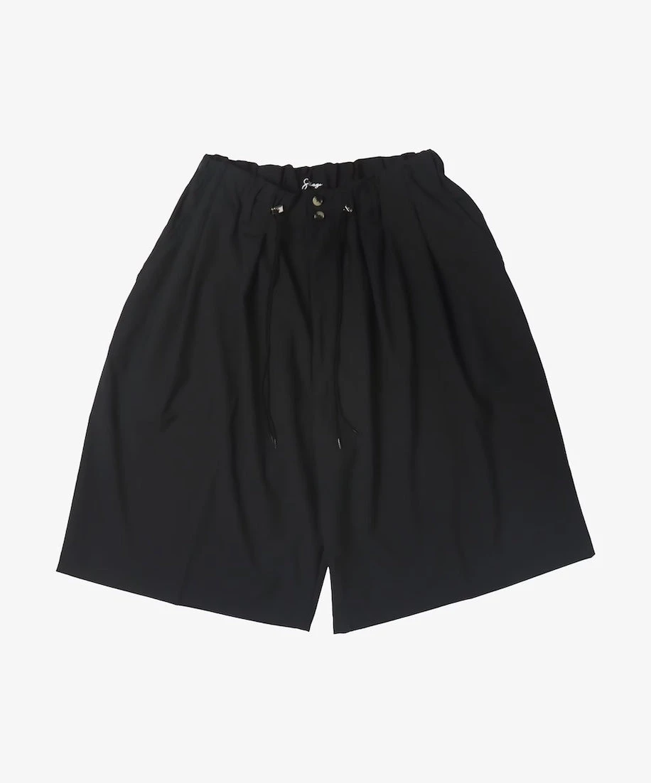The Short Pants feature the same details and functions as our classic Circular Pants, as round and loose fit, 2 tucks side, waist rubber, doubled drawcords, shell buttons. Here in its most versatile version in Tropical Wool, which is a super fine gauge, summer worsted wool, it is suitable for any type of climate.