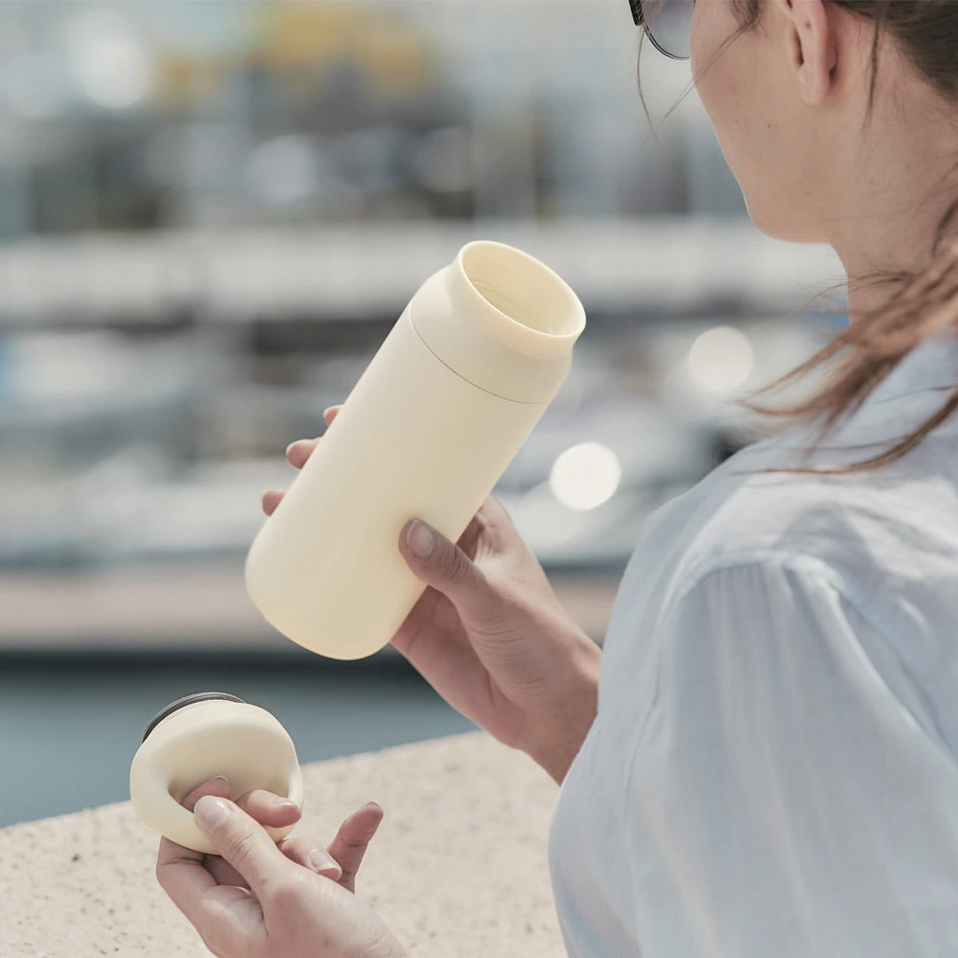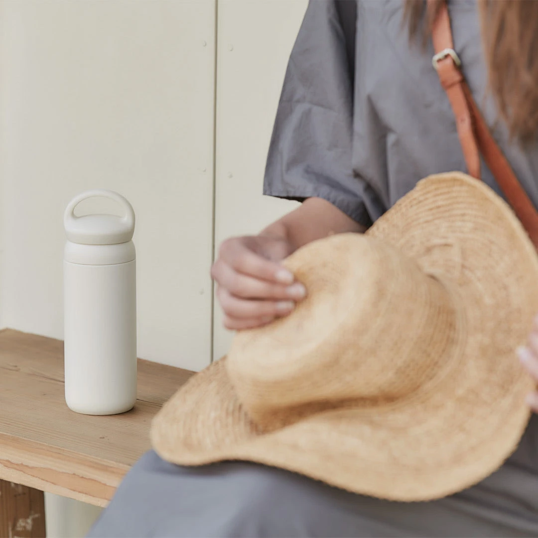 DAY OFF TUMBLER is designed for a relaxing yet active day off. Vacuum insulated, it retains the temperature and flavor of drinks for a long time. With a rounded handle that is comfortable to hold, it is perfect for carrying around on walks or day trips. The cap feels smooth on the mouth and is structurally designed to stop ice cubes and hot drinks from coming out vigorously so you can drink comfortably until the very last sip. The bright colors are inspired by a relaxed beach resort and can match well with your day off fashion.