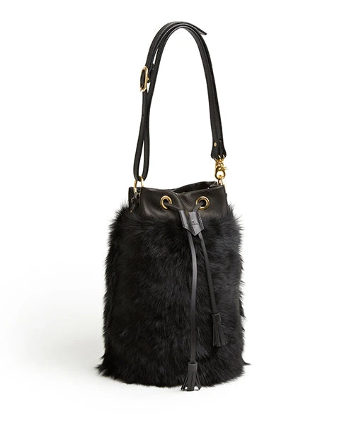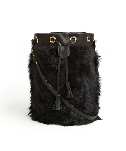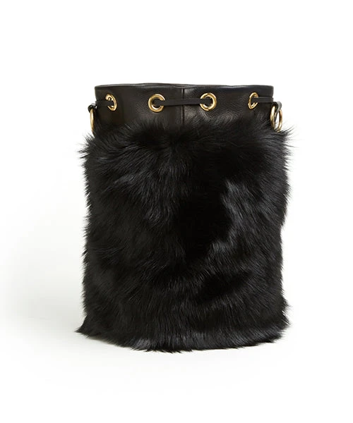 - (ki:ts) Drawstring shearling bag in full-grain cow soft leather and lambskin