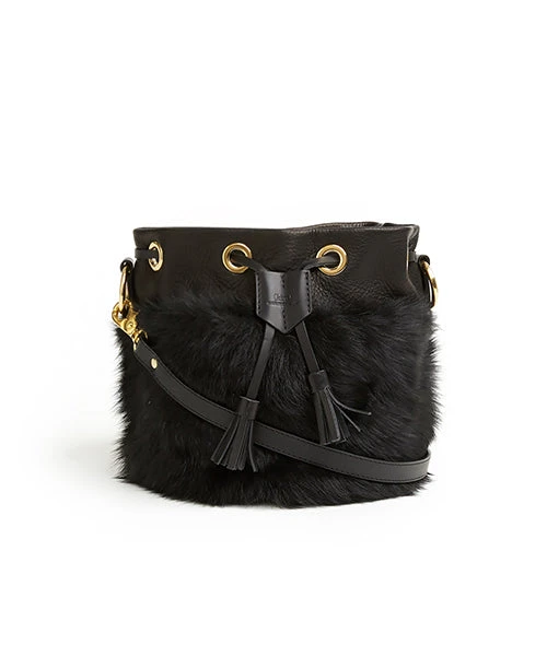 - ki:ts) Drawstring shearling bag in full-grain cow soft leather and lambskin