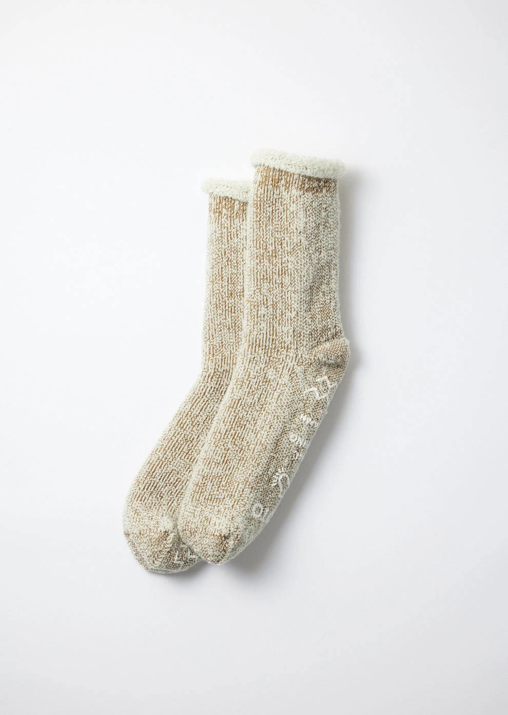 The thick pile fabric used for these bulky slipper socks is made of 19.5 micron extra fine merino wool. The tenderly soft texture of the material gives the highest quality to this item. Extra fine merino wool comes also with heat-retaining, moisture-wicking, moisture-absorbent, anti-odor, and anti-bacterial properties. As the fabric is pre-shrunk, you can wash this item at home.