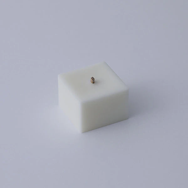 The fragrance candle is pure white candle using a wood chip as a wick.