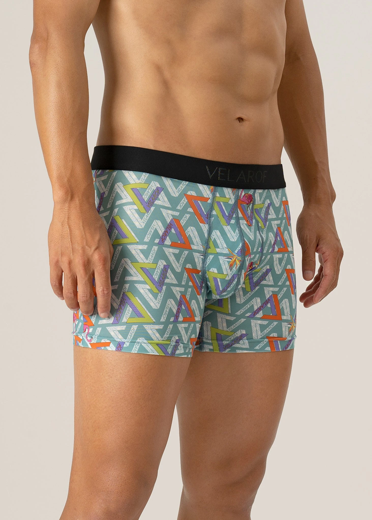 Created from a pattern of hemp leaves symbolising eternity, Geo Paradise sets the tone for a positive day, fusing striking V logos with bird of paradise and flamingo motifs to represent happiness. Set in bright hues with a branded waistband, this optimistic and tropical design also promises lasting comfort with its silky soft fabric and premium fit.