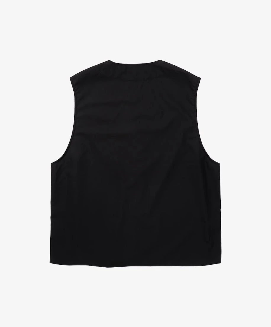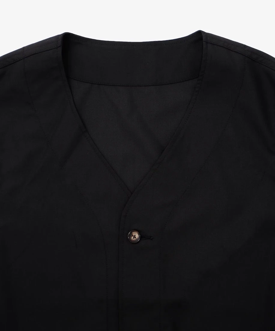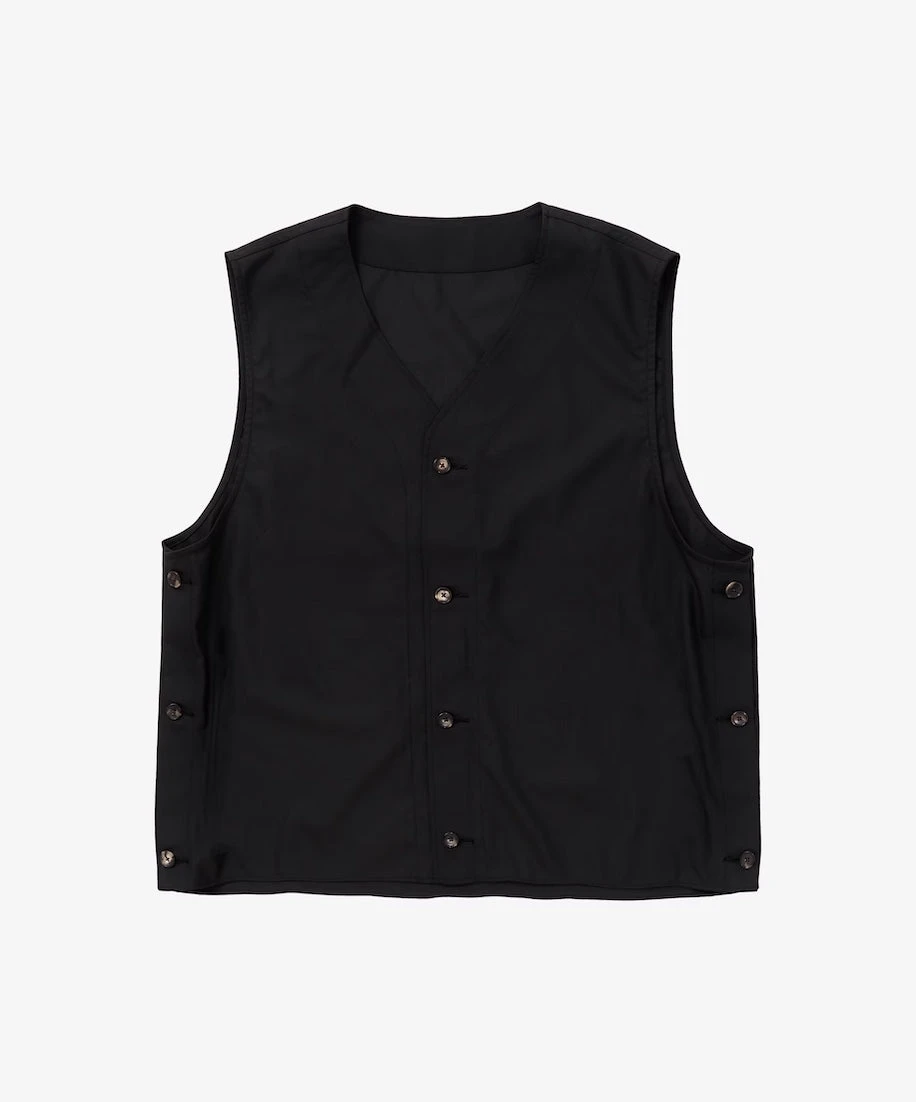 Sillage’s Gilet (Vest) is wide and boxy featuring shell buttons on the center and sides, a collarless neckline, two large flap pockets, and hidden side pockets, making sure that you can carry all of your belongings without compromising comfort. Here in its most versatile version in Tropical Wool which is a super fine gauge, summer worsted wool, it is suitable for any climate.