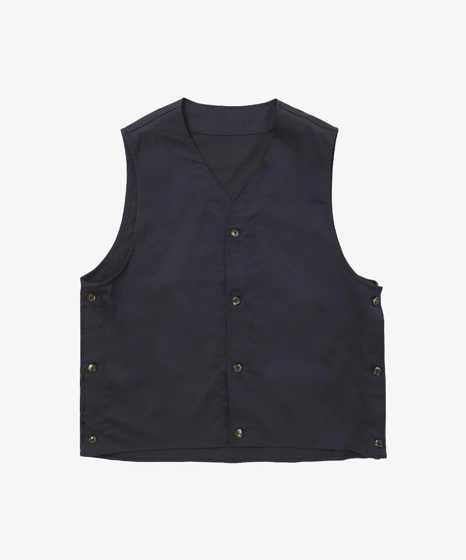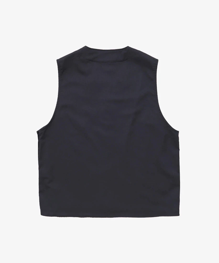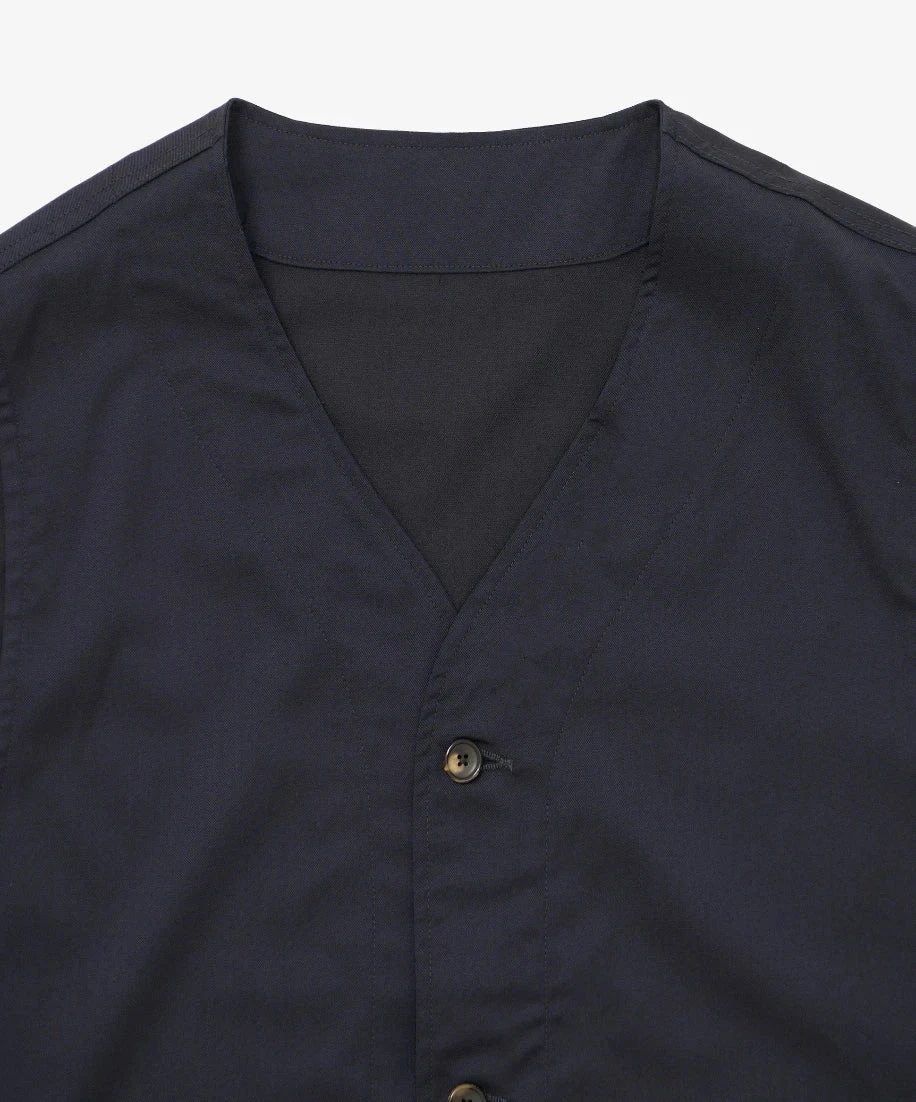 Sillage’s Gilet (Vest) is wide and boxy featuring shell buttons on the center and sides, a collarless neckline, two large flap pockets, and hidden side pockets, making sure that you can carry all of your belongings without compromising comfort. Here in its most versatile version in Tropical Wool which is a super fine gauge, summer worsted wool, it is suitable for any climate.