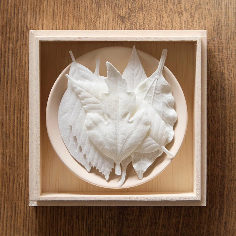 Box set of six of our unique leaf-shaped HA KO incenses, made of paper. Contains six halcyon scents with a feeling of botanic vitality. The perfect gift set, that comes with a plate to allow instant use.