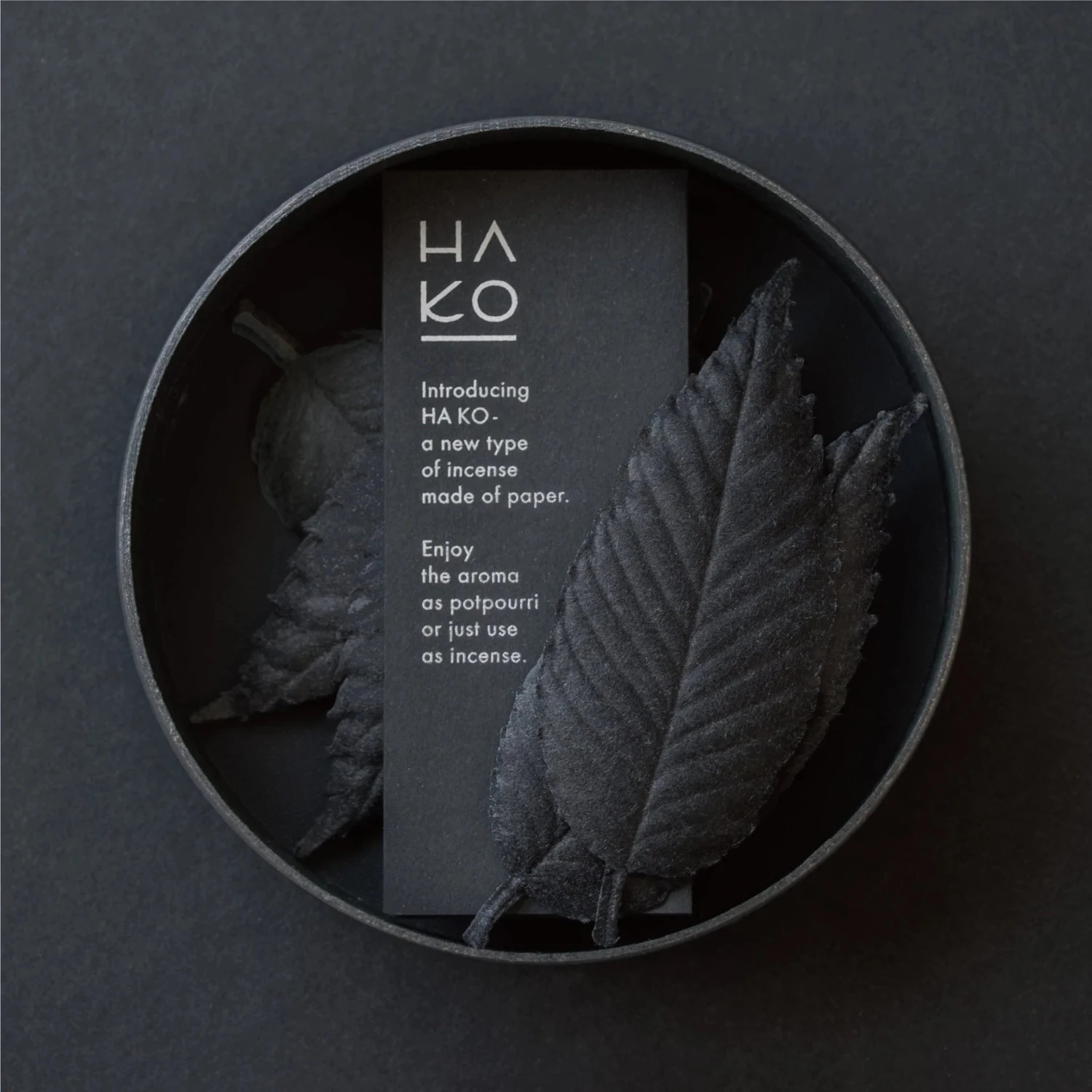 A round-type box made of black paper. This stylish set is packaged to be completely black inside and out, and matches a wide range of scenes.
