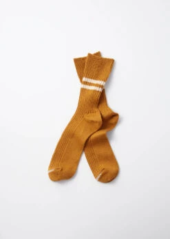 These hemp cotton socks are accentuated with two stripes. The 2×2 ribbed fabric feels soft and matched well with effortless summer clothes such as T-shirts, shorts and sandals. Made of two different natural materials, hemp and organic cotton, the item provides the comfort of cotton as well as the breathability and quick-drying properties of hemp with a unique crisp texture.