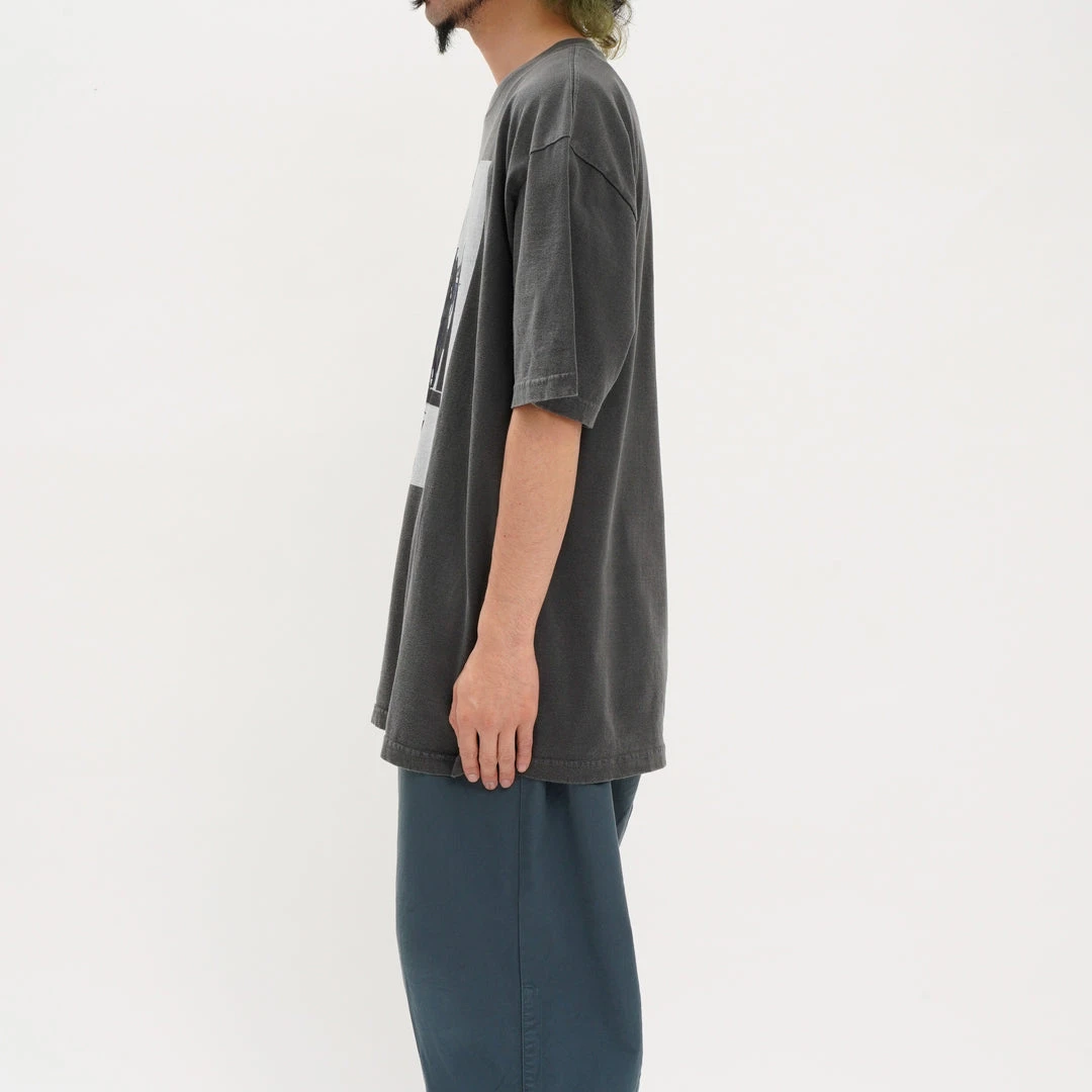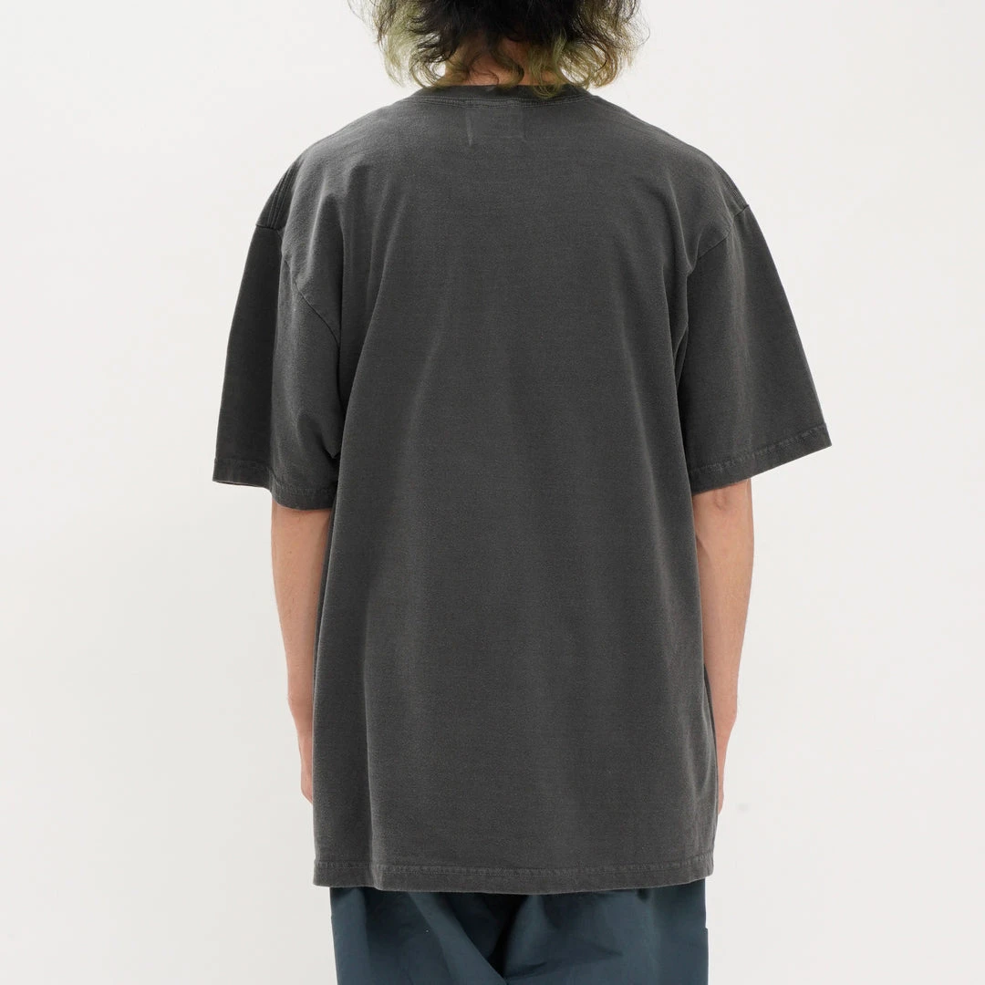 The charcoal version is made with a pigment-dyed body, complemented by subdued blue text for a vintage-inspired finish.