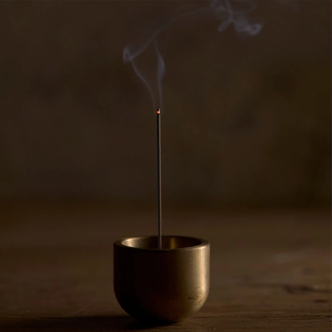 A censer made of brass to elegantly light and enjoy incense from &INCENSE. This luxurious gem, carved from a block of brass, yet still creates a profound feeling. The elegant form allows you to place it anywhere.