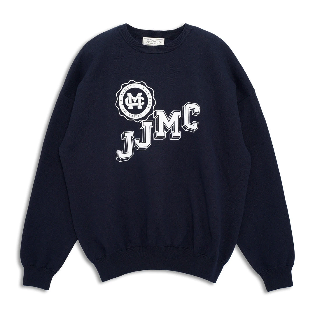 A bold college-style logo is printed on the knit, capturing the nostalgic spirit of the 1960s in a modern design.
