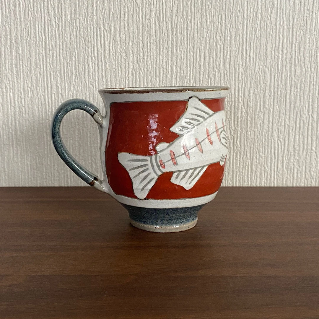 Slip is coated upon still soft greenware, and fish patterns are carved in lines. The motif is revealed after scratching off around the drawn lines.