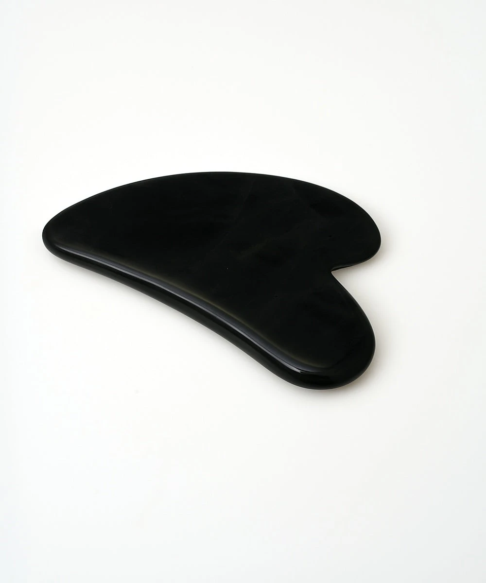 Our heart-shaped tool is made of Black Obisidian, which has traditionally been used to repair, de-stress and decongest complexions and is designed to glide over the contours of the face.