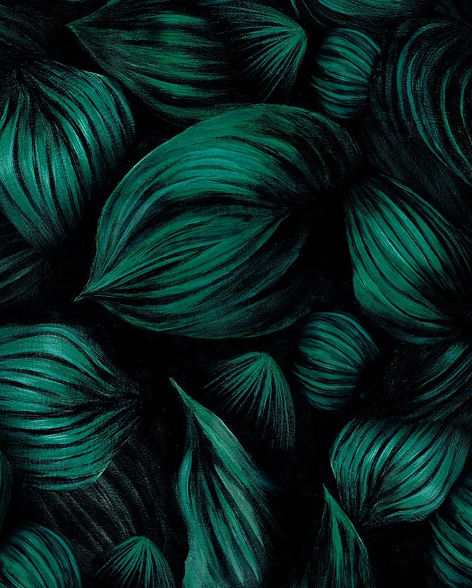 The fabric’s bespoke dark tonal print of tropical leaves was hand-painted by our designer, Jessica Kayll.