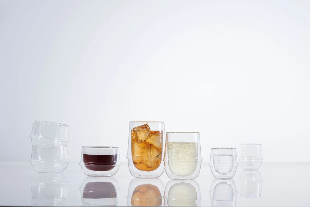 KRONOS makes drinks look like they are floating in air with a double wall structure. The ring supports your fingers for easy gripping, and the cup has an ideal angle for drinking. With thermal insulated construction, the cups maintain the temperature of hot and cold drinks for a long time. The items can also be perfect for serving desserts or appetizers.