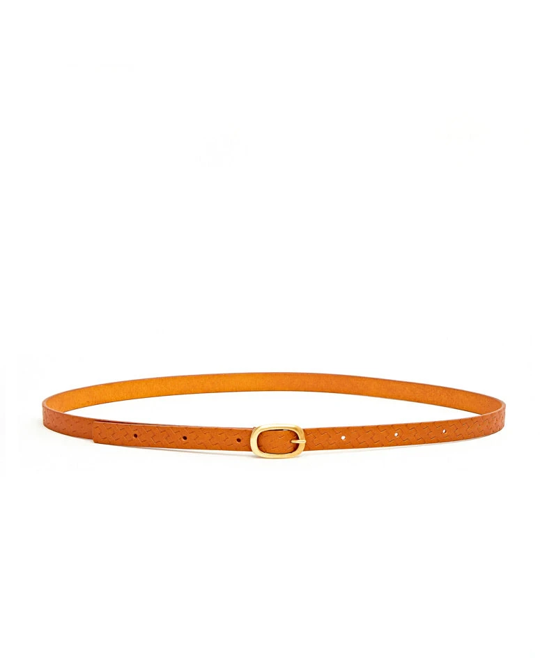 - (ki:ts) Plait Emboss Narrow Belt in cow leather