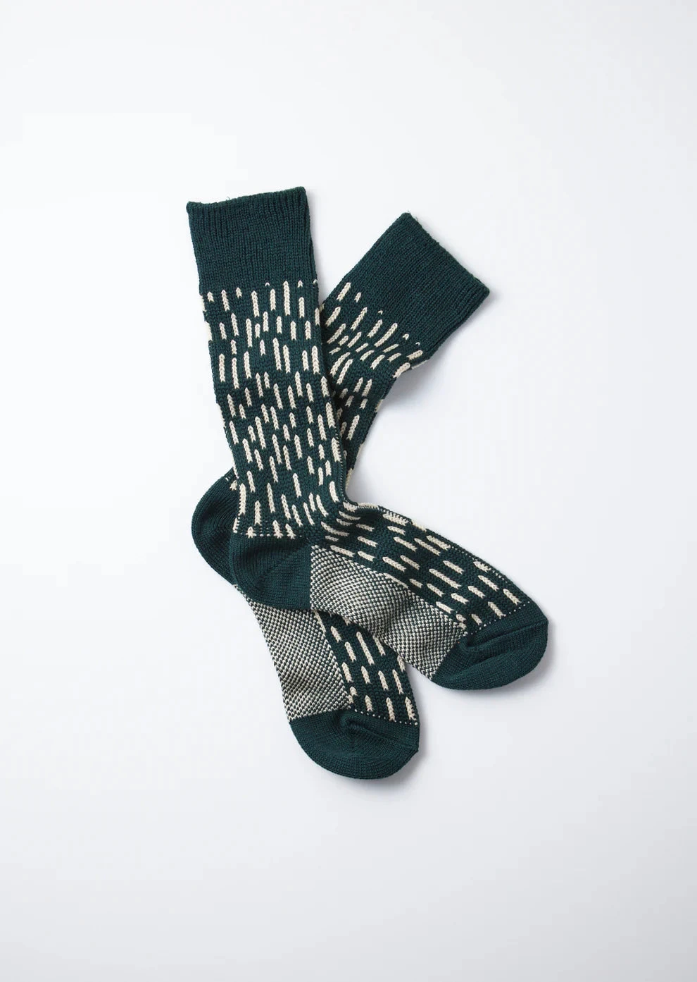 This unique pattern adopted by the East German Army and the Czech Army is now known as the Raindrop Camo because it looks like falling rain. By adding a modern twist to the design, the classic pattern is beautifully knitted in a pair of socks with a low-gauge knitting machine. Yet with chunky texture, the item naturally blends in not just casual outfits but also sophisticated looks.