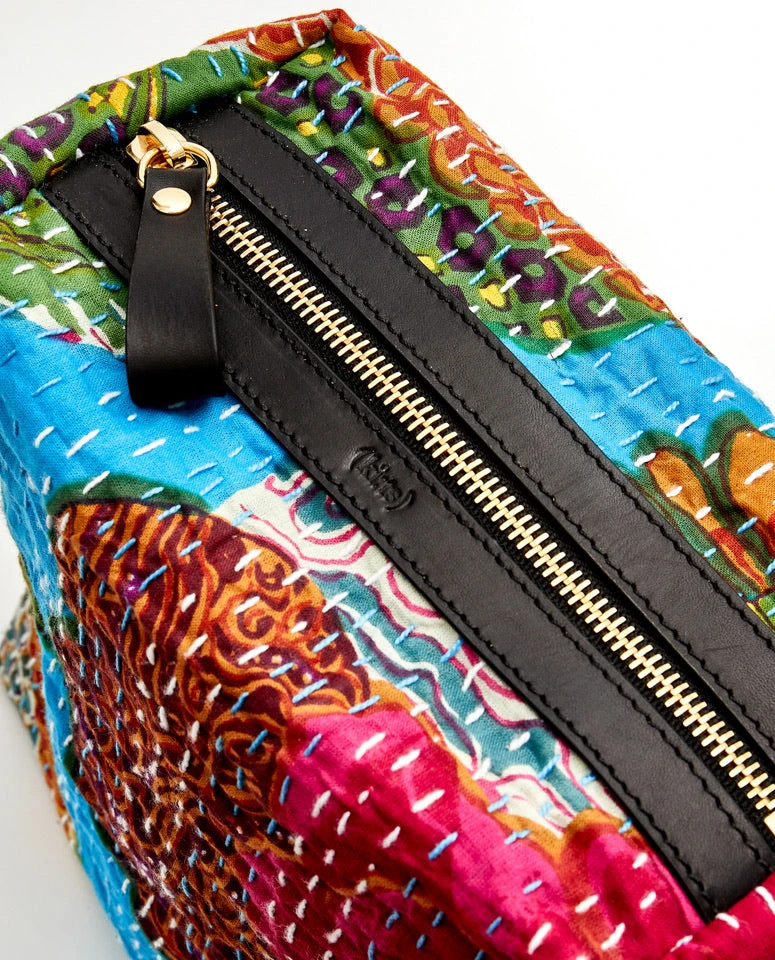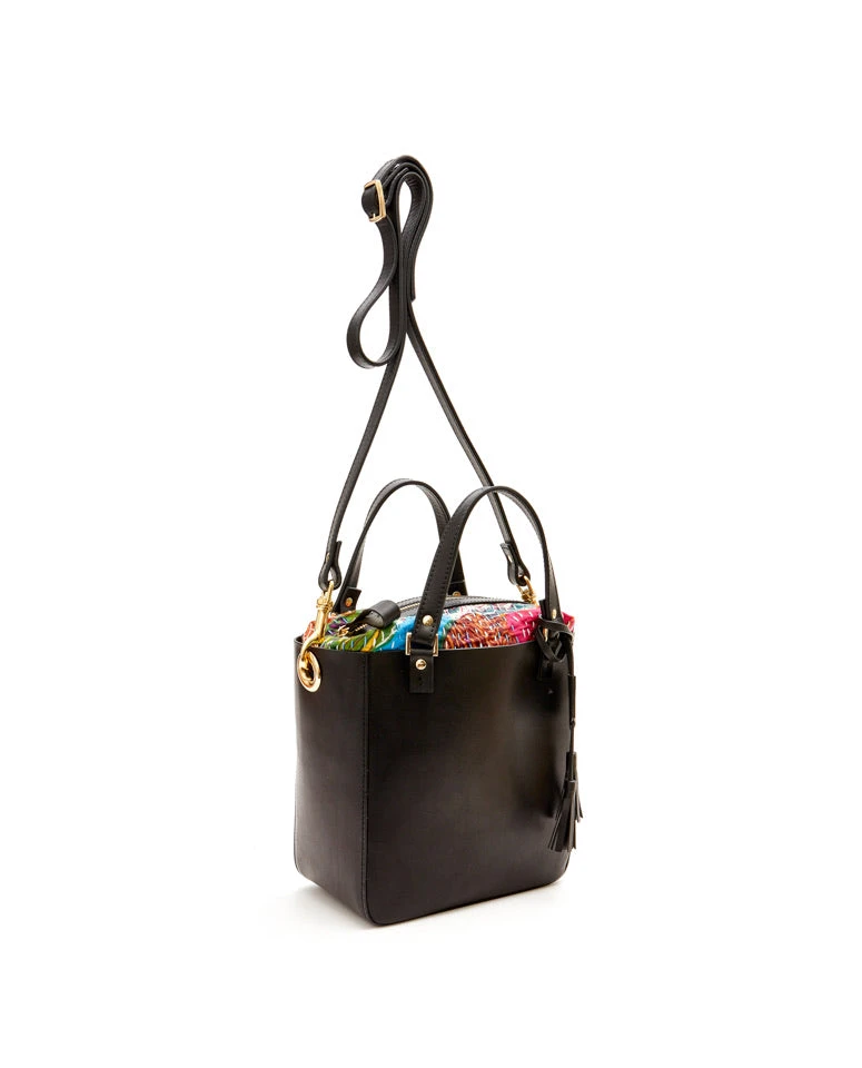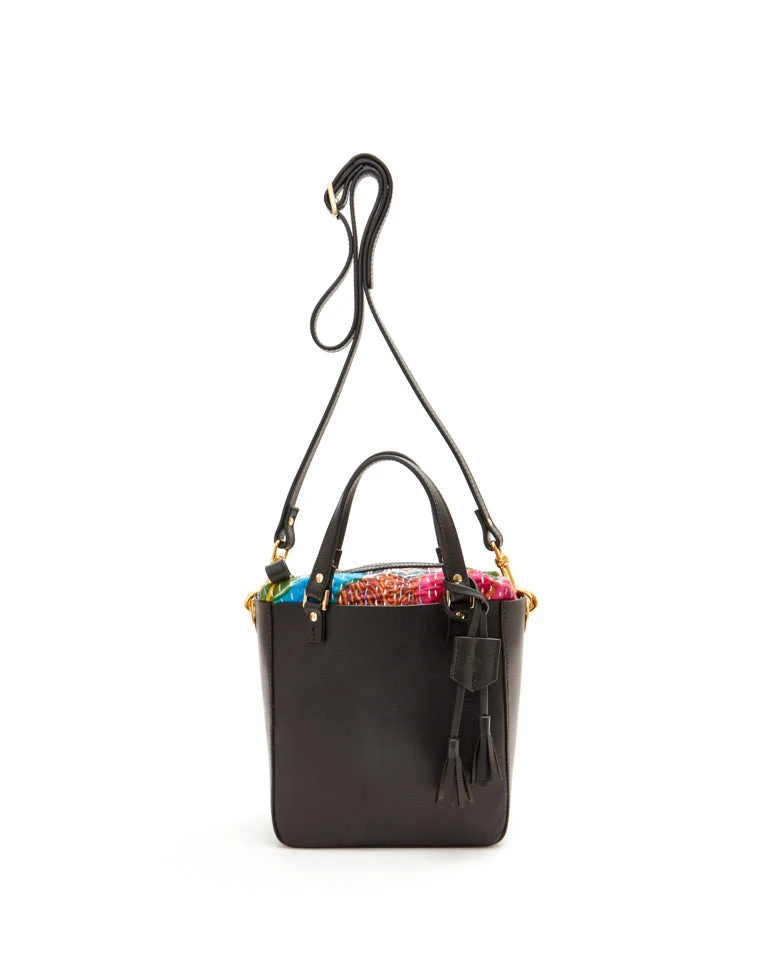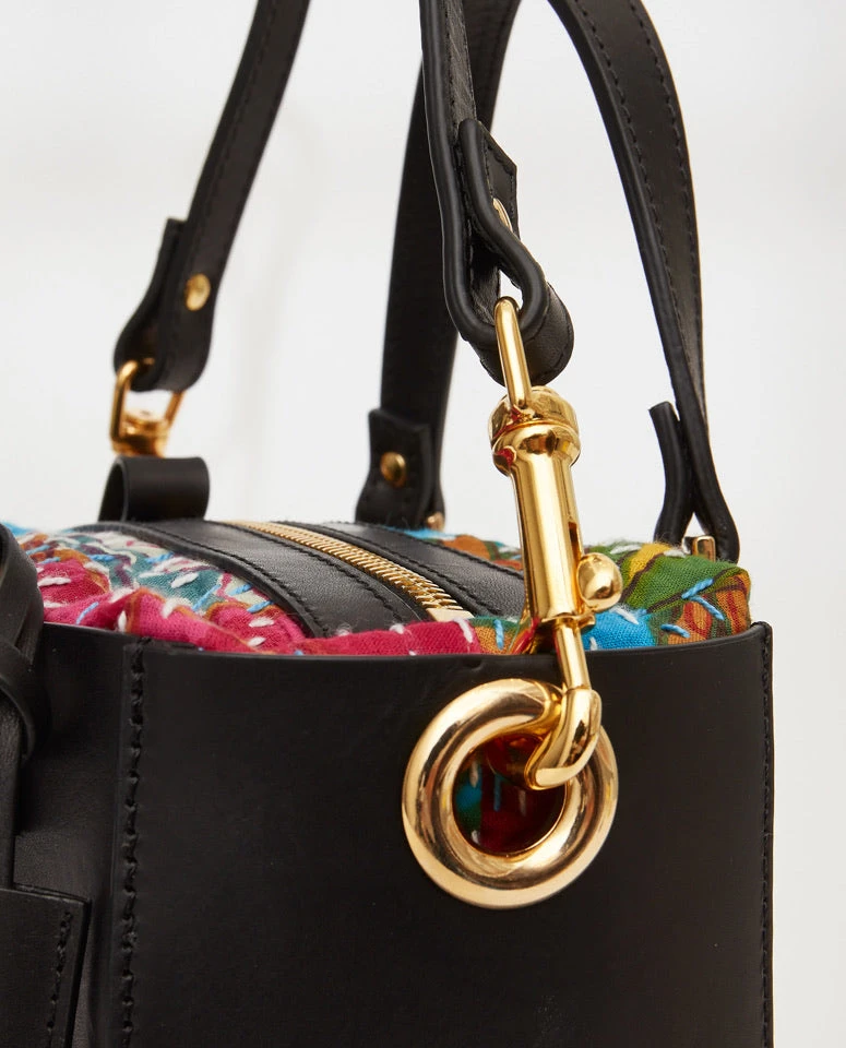 (ki:ts) SQ hand bag with pouch in full-grain cow hard leather and vintage fabric assort colour