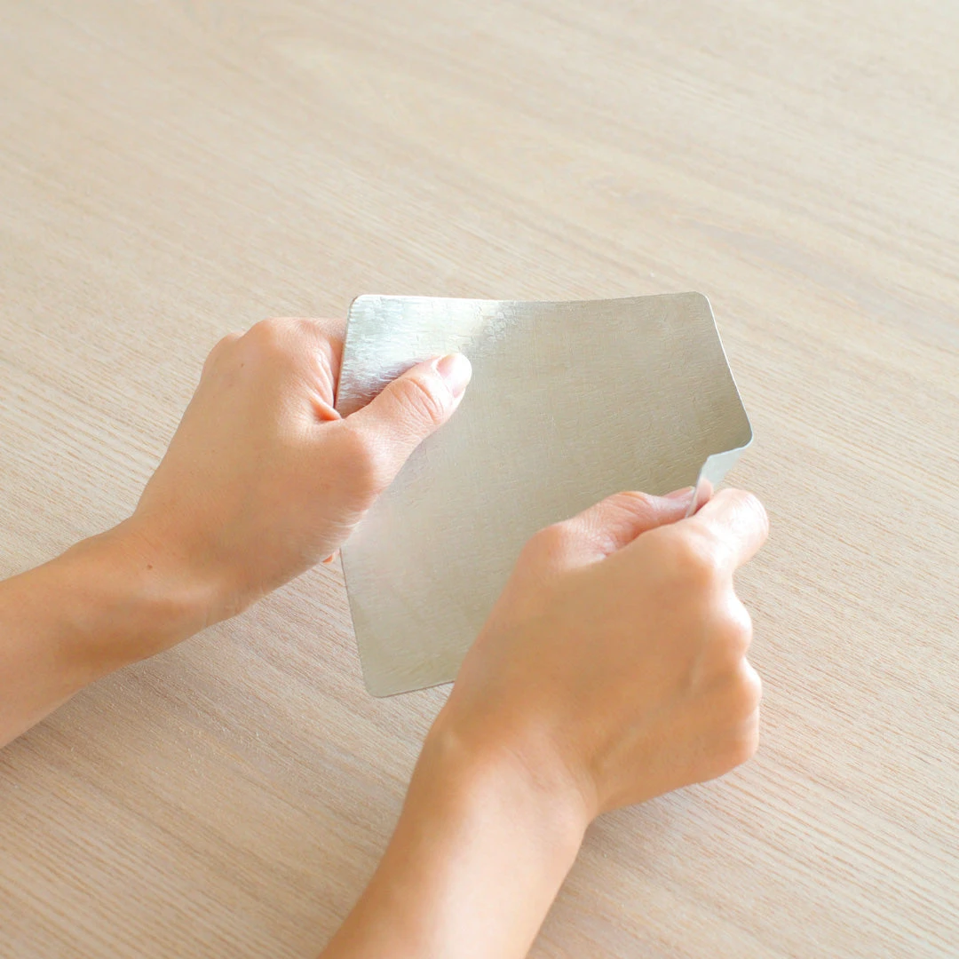 That product, called ‘Suzugami’ or ‘tin paper’, is a new tin product that, as its name suggests, is thin like paper and freely malleable. By repeatedly hammering a rolled tin sheet, not only can it become patterned, but it gains a strength that has resistance to repeated bending. It is a product only metalwork artisans could conjure up.