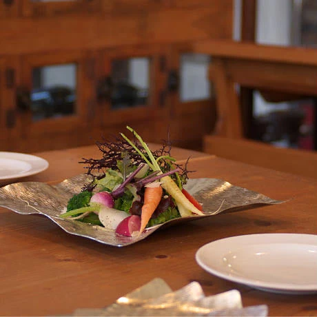 The largest suzugami of 24 x 24 cm is the perfect size for use as a serving plate to share out food between guests such as salad or soba noodles. It can also be used for a range of other purposes such as for displaying flowers by bending the suzugami up into a vase shape.
