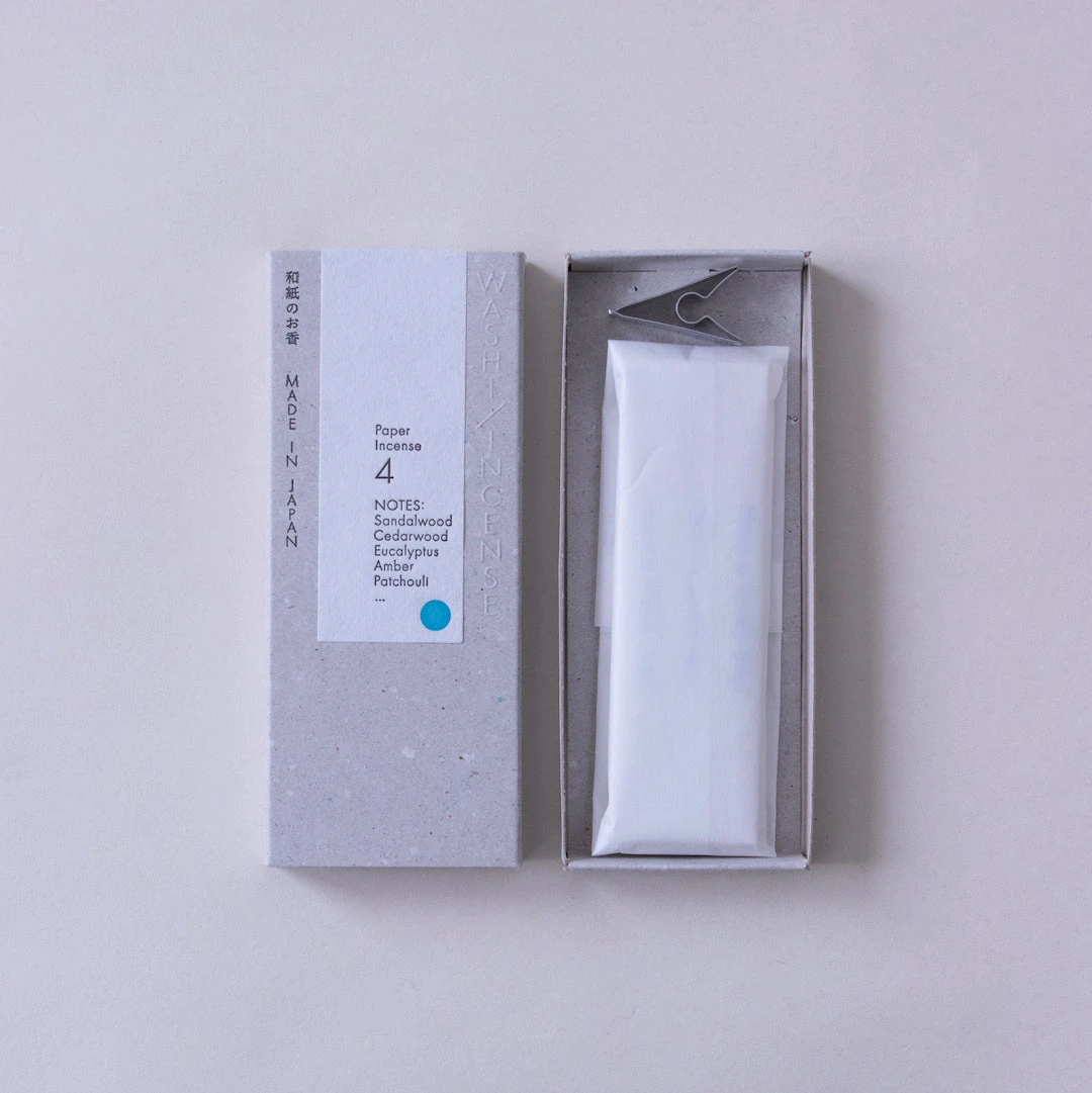 From the pioneers of fragrance behind our bestselling HA KO collection comes Washi Paper Incense Strips, a new type of incense combining friendly missives with rich aromas. Each box contains 30 strips of incense steeped in a blend of natural aromas carefully combined to create a specific scent, along with a metal clip to hold the incense as it burns.